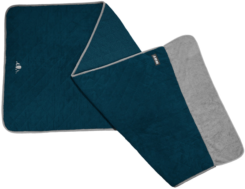 Color: This is an SAILOR BLUE Microfiber Towel. The bottom of the mat is SAILOR BLUE with a COOL GREY border and COOL GREY micro-fiber towel/flap on the end.